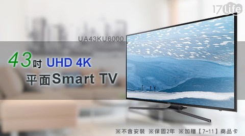 我相信,大家都知道買Samsung三星-43吋UHD 4K平面Smart TV UA43KU6000(不含安裝)+贈【7-11】商品卡1900元"要在網路上找便宜